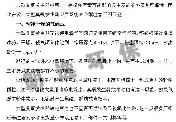 大型臭氧發生器在使用時用注意事項