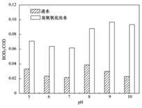 圖 2pH值對(duì)石化二級(jí)出水可生化性的影響Fig.2Effect of pH on thebiodegradability of secondary effluent during ozonation