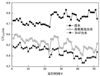 圖 4臭氧-曝氣生物濾池對(duì)UV254的去除Fig.4UV254 removal characteristics of thecombined process