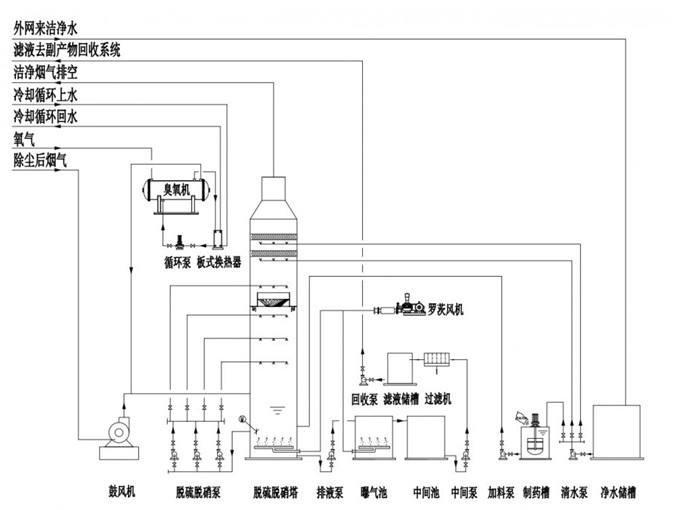 臭氧脫硝法適用在濕法脫硫系統,利用脫硫塔作為吸收塔,脫硫液作為吸收液;氨氣中的NOX經臭氧臭氧氧化后,通過吸收液吸收生成硝酸鹽外排。對于干法或是半干法脫硫系統,就需要增加吸收塔,用于吸收臭氧氧化后的NO2,NO3,N2O5等氣體,生成硝酸鹽,可以后所投入費用及運行費用都比濕法高。